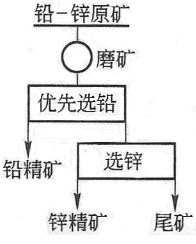 也叫分別混合浮選選礦工藝流程。將易浮的礦物與另一種礦物可浮性與它相近的易浮部分一起浮選,得到混合精礦后再分離;而第二種礦物的難浮部分,接著再選。它適合于處理同一種礦物包括易浮和難浮兩部 的復雜多金屬礦石。其優點是可降低藥劑用量、消除過剩油藥對分離的影響,有利于提高選礦指標,其缺點是比全浮選要多用選礦設備。